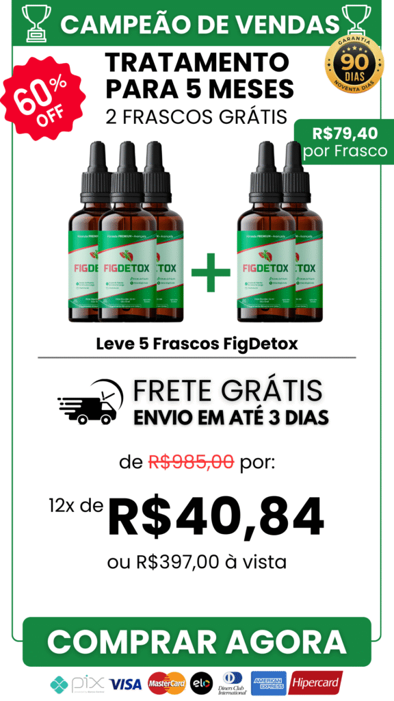 FigDetox vai além de apenas tratar os sintomas: ele atua diretamente na raiz do problema, combatendo a gordura no fígado de forma eficaz. Com ação desintoxicante profunda, ele elimina as toxinas e a gordura acumulada através das fezes, urina e suor, purificando seu corpo de dentro para fora. Além disso, fortalece e protege o fígado, aumentando sua resistência e promovendo uma saúde hepática duradoura. Com FigDetox, você não só resolve o problema, mas também previne que ele volte!